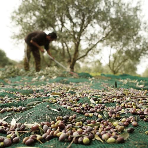 - Il contadino usava la rete per ricavare l'oliva dall'albero.